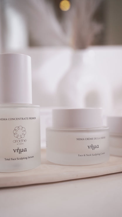 Elevate your skincare routine with Nema Crème De La Crème, an advanced sculpting cream designed to lift, firm, and reshape the skin for a youthful, radiant appearance. This high-performance formula works instantly to tighten and smooth sagging skin while delivering long-term benefits such as improved tone and texture. Specifically crafted for the delicate areas of the face, neck, and jawline, it helps restore youthful contours, reduce fine lines and wrinkles, and enhance overall firmness and elasticity of the skin. The cream also delivers the Triorbital skin lift, targeting the eyebrows, eyelids, crow’s feet, and upper cheeks to lift, firm, and smooth these areas for a more youthful and refreshed eye contour.